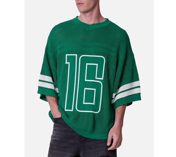 Top de punto de malla verde de verano para hombre con estampado 3D número 16 suéter de estilo deportivo frontal de media manga informal fino